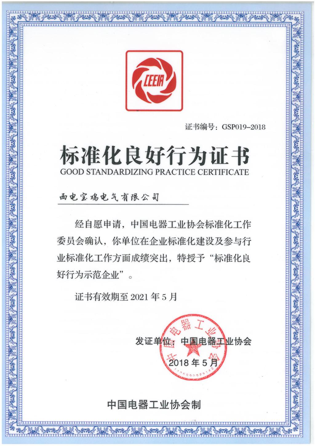 2018.5標(biāo)準(zhǔn)化良好行為示范企業(yè)