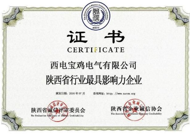 2016.7陜西省行業(yè)最具影響力企業(yè)