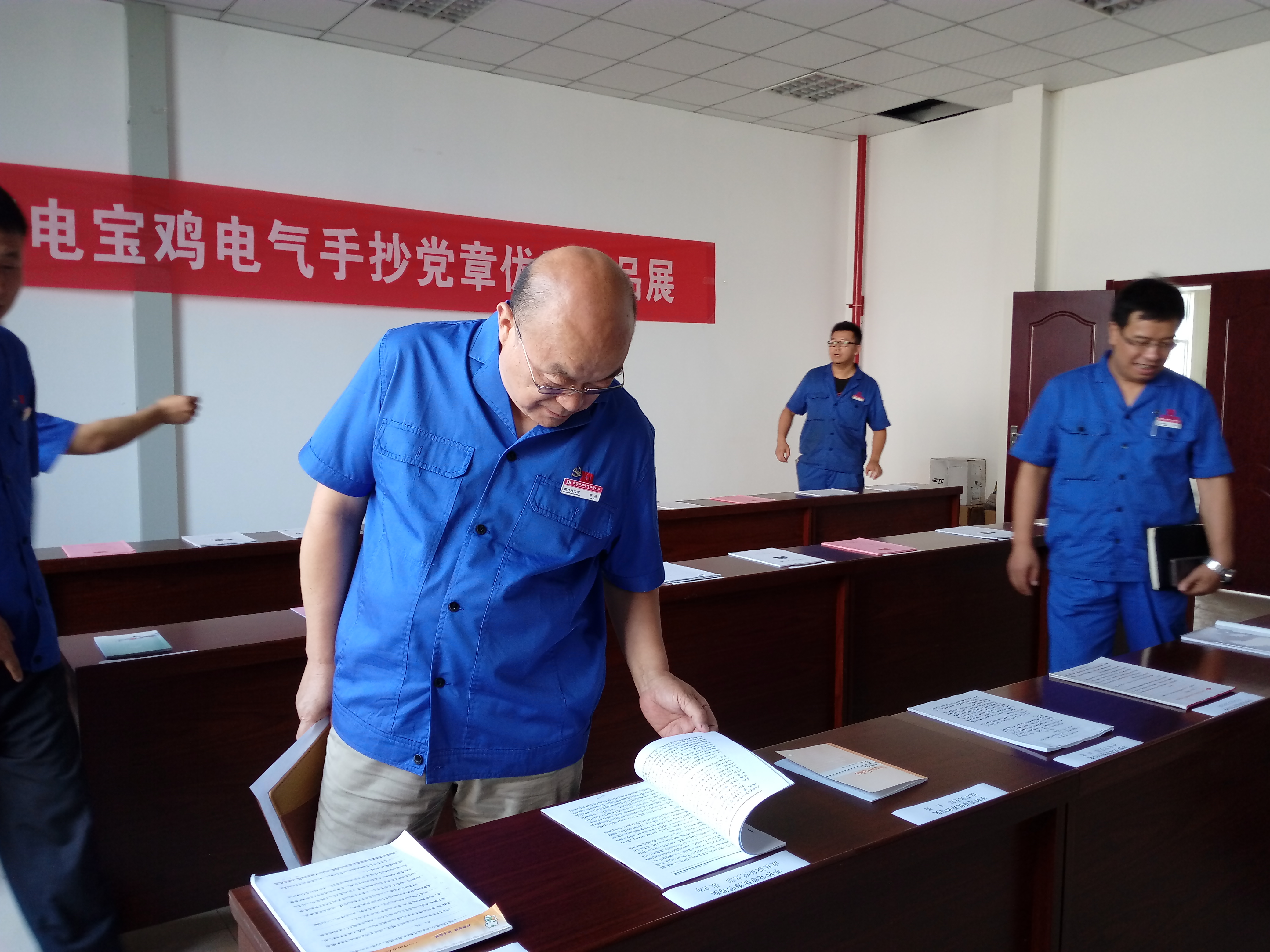 自公司開展“兩學一做”學習教育活動以來,各黨支部認真開展學習討論,并組織全體黨員積極參與“手抄黨章”活動?;顒又?,領(lǐng)導(dǎo)干部帶頭,黨員齊參與,掀起了一股“重讀黨章、手抄黨章”的熱潮。截止7月底,公司233名黨員全文抄寫了黨章,“兩學一做”學習教育協(xié)調(diào)領(lǐng)導(dǎo)小組辦公室從中精選出了30篇“優(yōu)秀書寫”作品進行集中展示。參展作品形式多樣,字跡工整。展出當天,觀展人數(shù)達到150余人次。
