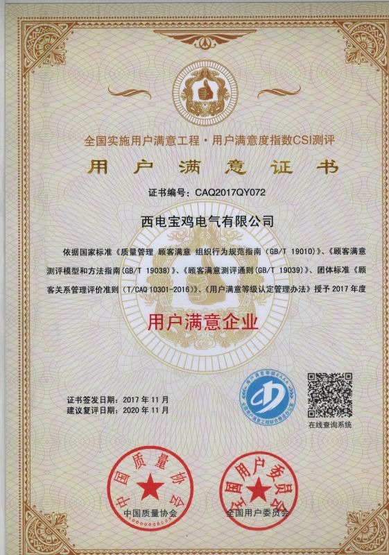 2017.11全國用戶滿意企業(yè)