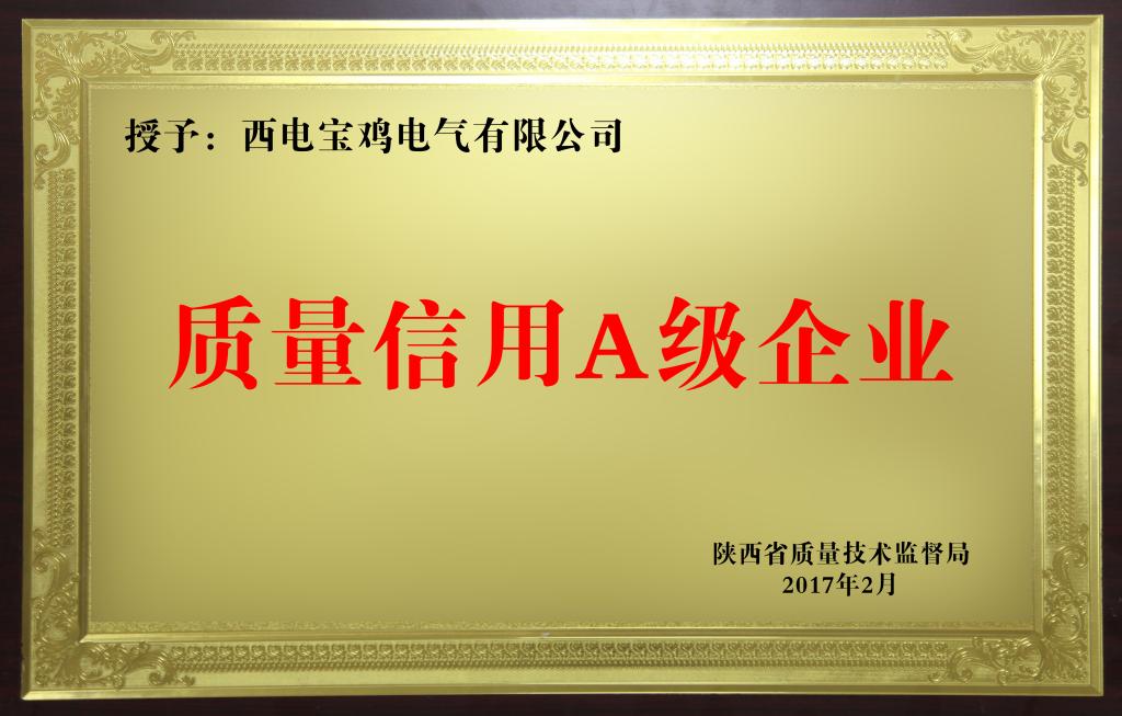 2017.2陜西省質(zhì)量信譽(yù)A級企業(yè)