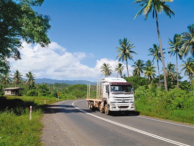 瓦努阿島是南太平洋島國斐濟第二大島。中鐵一局斐濟公司在島上修建的納布瓦魯高速公路和布扎貝高速公路解決了人們出行的“老大難”問題,有力拉動了經濟發(fā)展,被斐濟民眾譽為“斐中兩國友好的紐帶”“共同發(fā)展致富的高速路”。圖為一輛卡車行駛在布扎貝高速公路上。 新華社記者 張永興攝