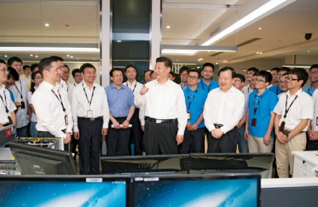 2015年5月26日下午,習(xí)近平總書記蒞臨位于杭州的中電海康控股公司??低暱疾煺{(diào)研。(圖片來源:新華社)