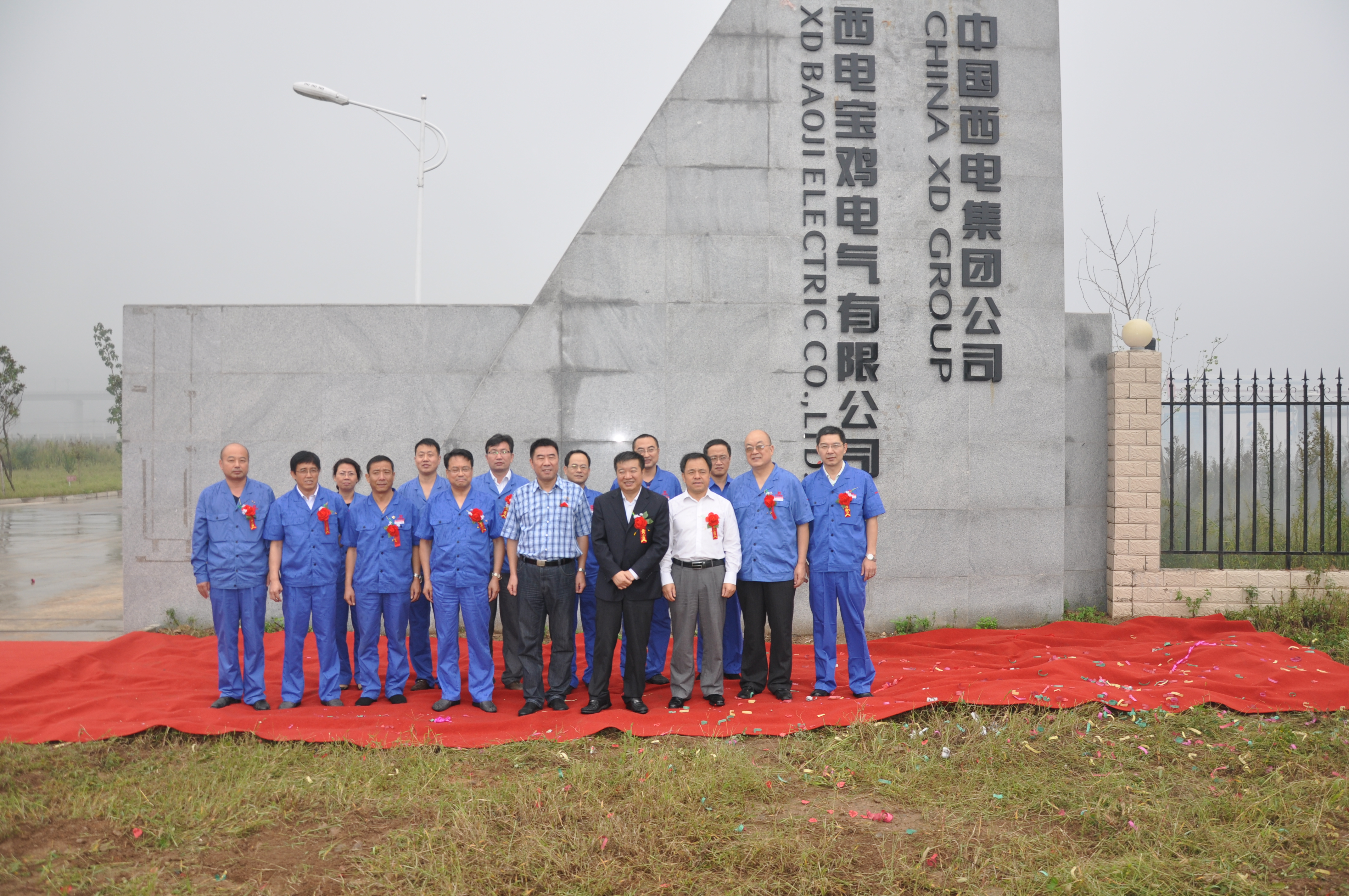 會(huì)議結(jié)束時(shí),與會(huì)同志歡聚在公司大門(mén)口,在熱烈的掌聲和鞭炮聲中,集團(tuán)公司總經(jīng)理張雅林和西電寶雞電氣執(zhí)行董事雒濤共同為西電寶雞電氣有限公司揭牌。