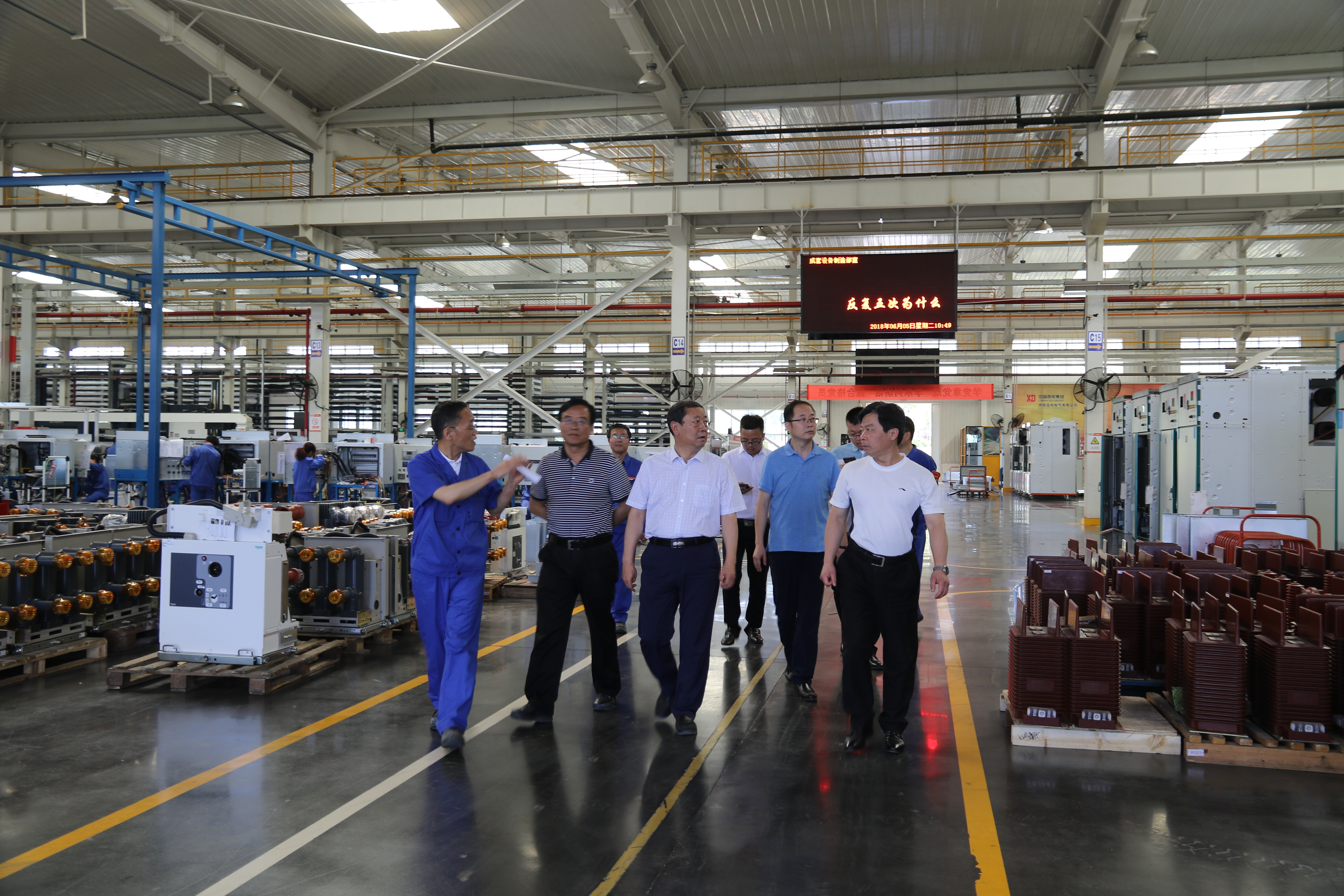 2018年6月5日上午,寶雞市高新區(qū)管委會副主任王天勛一行七人蒞臨西電寶雞電氣進(jìn)行參觀考察。在公司執(zhí)行董事和主管生產(chǎn)的副總經(jīng)理陪同下,參觀了開關(guān)柜成套裝配產(chǎn)線、斷路器生產(chǎn)線。召開了座談會,聽取了公司近幾年在黨建、市場營銷、新品研發(fā)、智能制造等方面的發(fā)展情況及公司十三五戰(zhàn)略發(fā)展規(guī)劃。