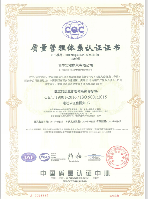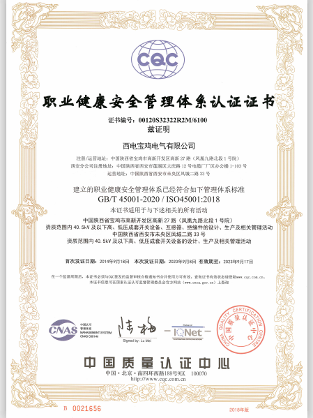 近日,西電寶雞電氣順利取得了由中國質(zhì)量認(rèn)證中心頒發(fā)的質(zhì)量、環(huán)境、職業(yè)健康安全管理體系新的認(rèn)證證書,標(biāo)志著該司質(zhì)量、環(huán)境管理體系的復(fù)評換證,職業(yè)健康安全管理體系的換版工作圓滿完成。