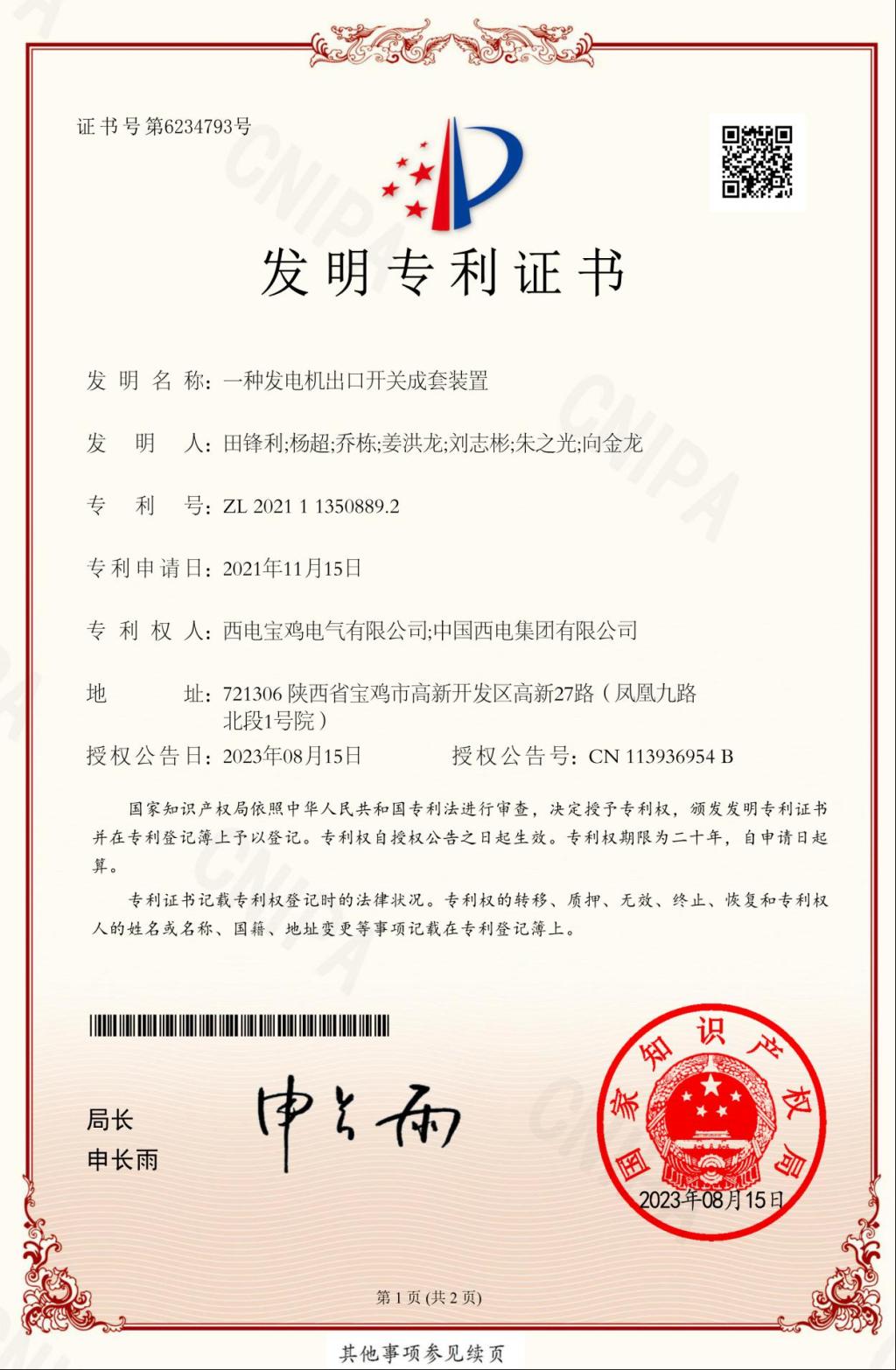 日前,由西電寶雞電氣自主研發(fā)的“一種發(fā)電機(jī)出口開(kāi)關(guān)成套裝置”的發(fā)明專(zhuān)利,順利通過(guò)國(guó)家知識(shí)產(chǎn)權(quán)局審查,并獲得國(guó)家發(fā)明專(zhuān)利授權(quán),這是西電寶雞電氣完全自主研發(fā)獲得的首個(gè)專(zhuān)利,成為西電寶雞電氣科技創(chuàng)新能力發(fā)展的又一重要里程碑,標(biāo)志著向科技強(qiáng)企邁出扎實(shí)的一步。