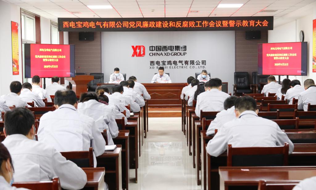 4月21日,西電寶雞電氣有限公司黨委召開2020年黨風廉政建設和反腐敗警示教育大會,公司班子成員、紀委委員、中層干部、紀檢委員以及各部門骨干人員參加了會議。