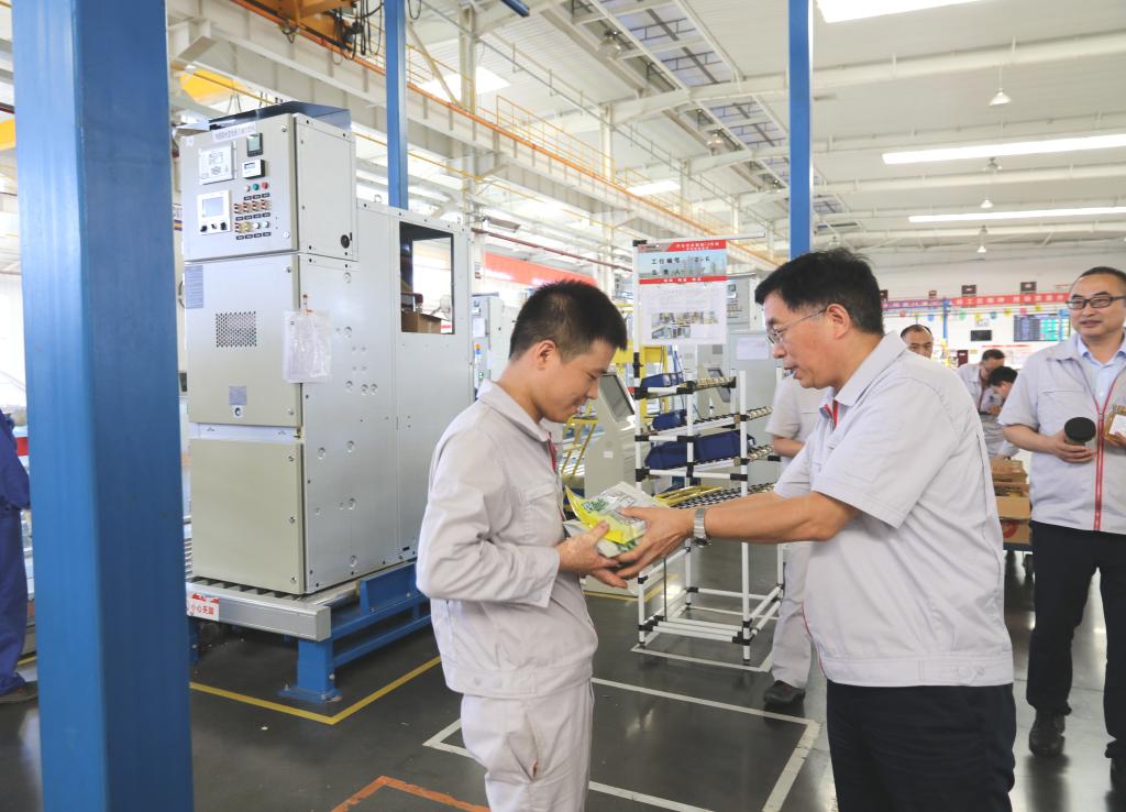 西電寶雞電氣黨委書記、執(zhí)行董事劉武周,總經(jīng)理謝洪濤等班子成員前往成套事業(yè)部等基層單位,將400余份蜂蜜、綠豆等清涼慰問品送到一線職工手中,把“清涼”送到一線職工身邊,把公司黨委的關(guān)懷送到了職工們的心坎上,并再三叮囑一線職工在高溫天氣下作業(yè),要合理安排時(shí)間,避免疲勞作業(yè),以防中暑。要求各單位要采取科學(xué)的防暑降溫措施,加強(qiáng)個(gè)人防護(hù)用品、急救藥品的配備,保證高溫天氣時(shí)職工的生命安全。