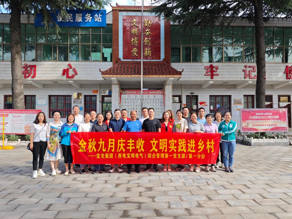 為深入學(xué)習(xí)貫徹落實(shí)習(xí)近平新時(shí)代中國特色社會(huì)主義思想和黨的二十大精神,不斷開創(chuàng)公司精神文明建設(shè)新局面,為企業(yè)高質(zhì)量發(fā)展提供強(qiáng)大精神動(dòng)力和豐潤道德滋養(yǎng),9月7日(周六)寶光集團(tuán)(西電寶雞電氣)綜合管理第一黨支部、綜合管理第一分會(huì),前往西電寶雞電氣新時(shí)代文明實(shí)踐站——磻溪鎮(zhèn)張家塬村開展“金秋九月慶豐收 文明實(shí)踐進(jìn)鄉(xiāng)村”結(jié)對共建活動(dòng)。