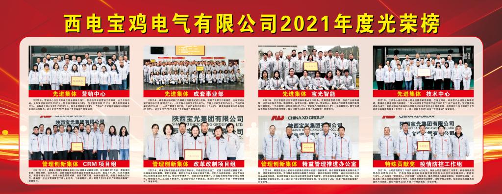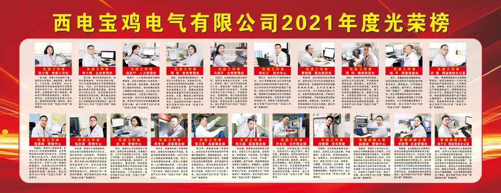 西電寶雞電氣2021年度光榮榜