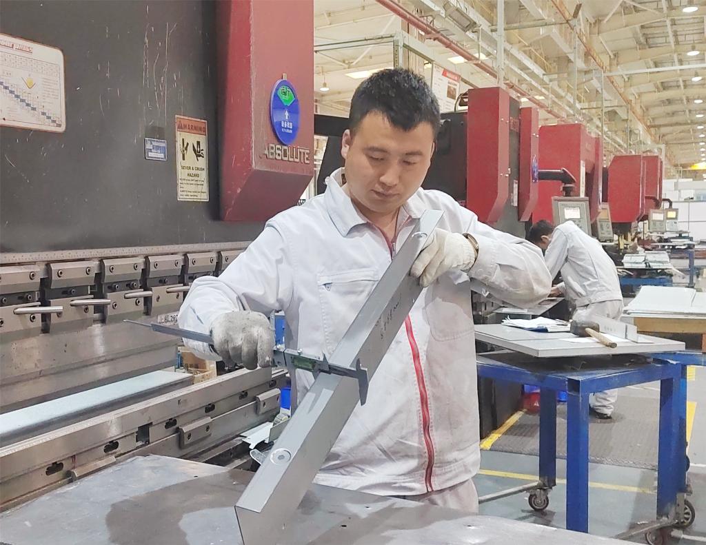 劉鵬是西電寶雞電氣配套事業(yè)部鈑金產(chǎn)線班長(zhǎng),大專學(xué)歷,鉗工高級(jí)技師。他愛(ài)崗敬業(yè),勤于思考,通過(guò)不斷摸索學(xué)習(xí),不但掌握了數(shù)控折彎?rùn)C(jī)的普通維修知識(shí),也對(duì)班組其它折彎?rùn)C(jī)的維修工作全面掌握。近年來(lái),為公司節(jié)約設(shè)備維修成本近40萬(wàn)元。為提高折彎效率,降低人工作業(yè)強(qiáng)度,劉鵬通過(guò)對(duì)折彎操作過(guò)程進(jìn)行反復(fù)研究試驗(yàn),對(duì)前側(cè)板折彎方法進(jìn)行改進(jìn),采用自動(dòng)折彎設(shè)備完成前側(cè)板加工成型,提高了側(cè)板折彎效率,單件側(cè)板折彎時(shí)間節(jié)省12分鐘,提升效率40%。折彎作業(yè)時(shí),因零件和臺(tái)面之間滑動(dòng)摩擦,長(zhǎng)期使用,臺(tái)面變形等原因,易造成板面輕度劃傷,影響產(chǎn)品外觀質(zhì)量,劉鵬采用雙層板焊接制作臺(tái)面,增加臺(tái)面強(qiáng)度,減少臺(tái)面變形,用萬(wàn)向滾珠作為臺(tái)面支撐,使加工過(guò)程中材料與工作臺(tái)的接觸由面接觸改為點(diǎn)接觸,由滑動(dòng)摩擦改為滾動(dòng)摩擦,減少了劃傷風(fēng)險(xiǎn),提高了產(chǎn)品的外觀質(zhì)量。他熟悉鈑金產(chǎn)線自主編程和操作,2021年被評(píng)為西電寶雞電氣“企業(yè)工匠”,2022年創(chuàng)立的“國(guó)網(wǎng)式前側(cè)板分步加工法”被評(píng)為西電集團(tuán)“職工先進(jìn)操作法”,2022年榮獲中國(guó)西電集團(tuán)“技能專家”稱號(hào)。